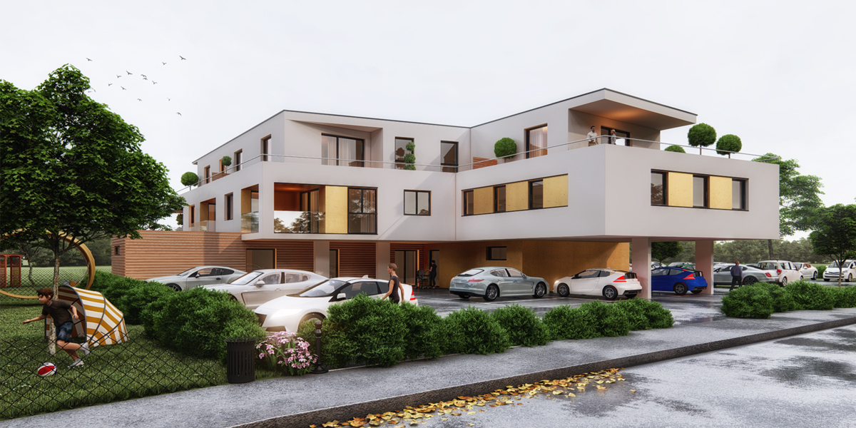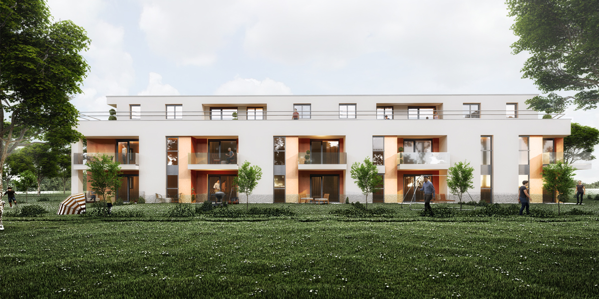 Neubau einer Wohnhausanlage für „Junges Wohnen“ mit 17 Wohneinheiten samt Stellplätzen, Nebenräumlichkeiten und Außenanlagen in 2821 Lanzenkirchen / Föhrenau Das Gebäude besteht aus Erd-, Ober- und Dachgeschoss und ist teilunterkellert. Die Anlage soll in Niedrigenergiebauweise errichtet werden. Die Wärmeversorgung erfolgt durch biogene Fernwärme. Die Wohnungen werden zum Teil im Erdgeschoss über offene Laubengänge bzw. über Gänge und das Stiegenhaus erschlossen