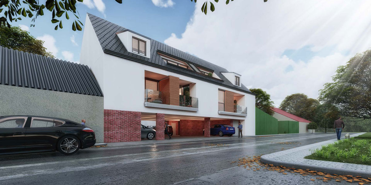 Die künftige Wohnhausanlage wird über die Pfarrgasse erschlossen und besteht aus zwei Gebäuden mit insgesamt 12 Wohneinheiten. Stiege 1 liegt direkt an der Pfarrgasse und besteht aus5 Wohnungen sowie Nebenräumen und Parkplätzen im Erdgeschoß. Hinter dem Innenhof mit Parkplätzen und Gärten liegt Stiege 2 mit 7 Wohneinheiten. Der Platzbedarf für die Nachrüstung eines Aufzuges wurde in der Stiegenspindel berücksichtigt.